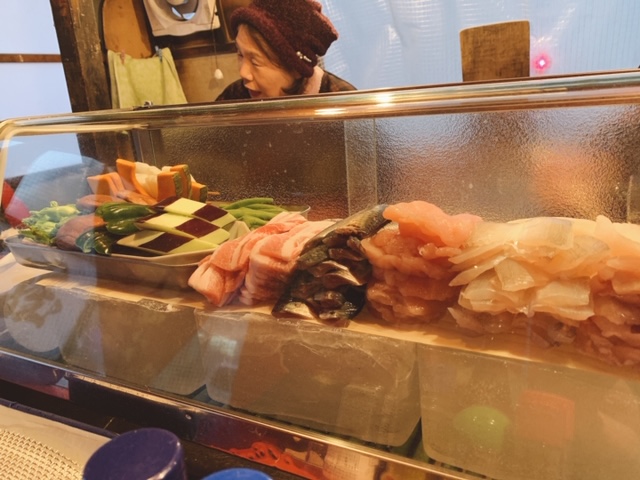 まずは『盛り合わせ』を注文。追加は、目の前の材料を見て注文します。