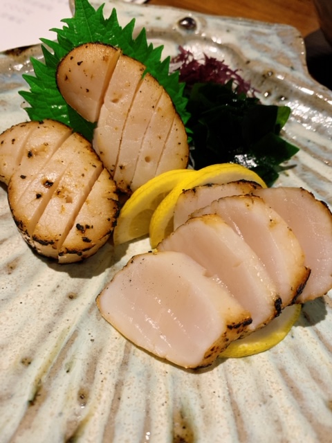“たいらぎ貝”刺身。今まで食べた事はありましたが、歯応えが全く違います。