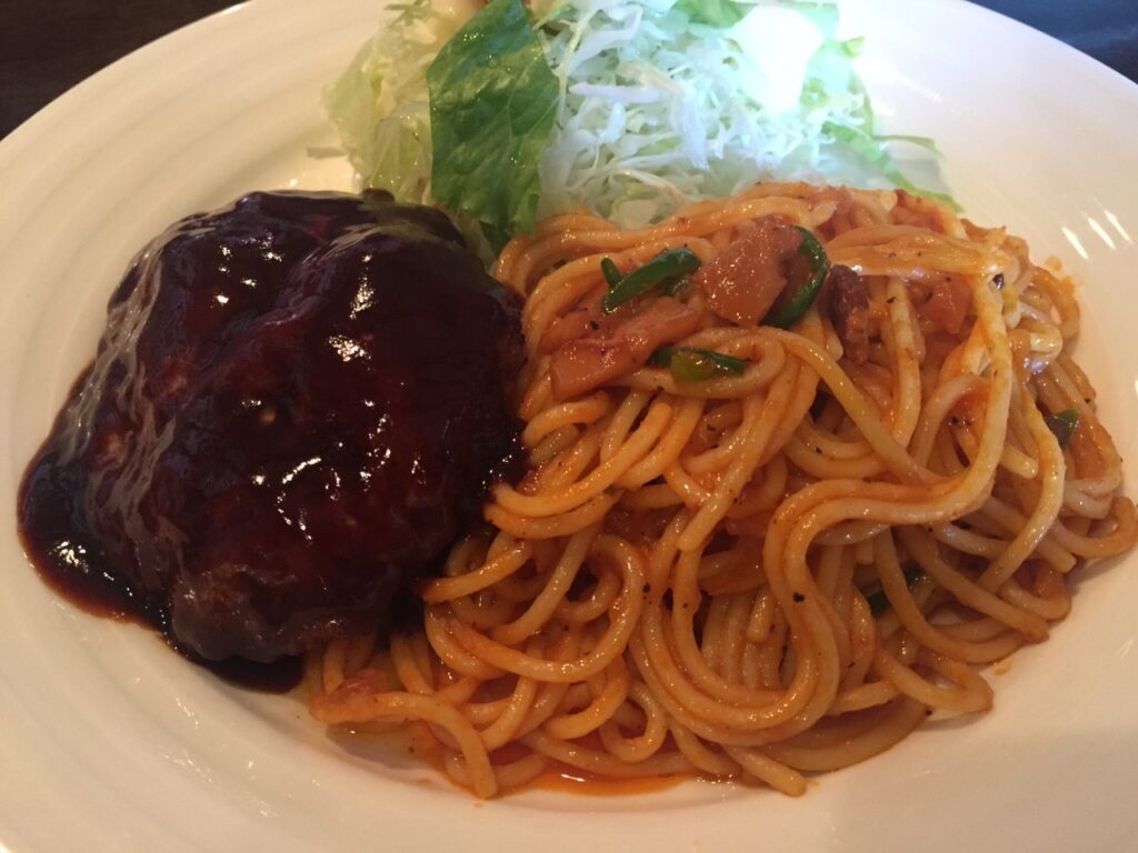ハンバーグにナイフを入れると、肉汁があふれ出ます。